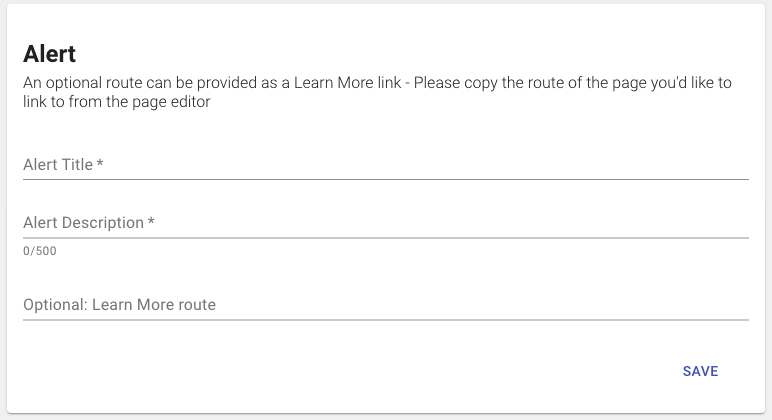 ➔ Change an alerts admin title/name ➔ Change or view which template an alert is using ➔ Select which sites the current alert is shared with ➔ Set alert visibility as public or staff-only ➔ Set alert dates