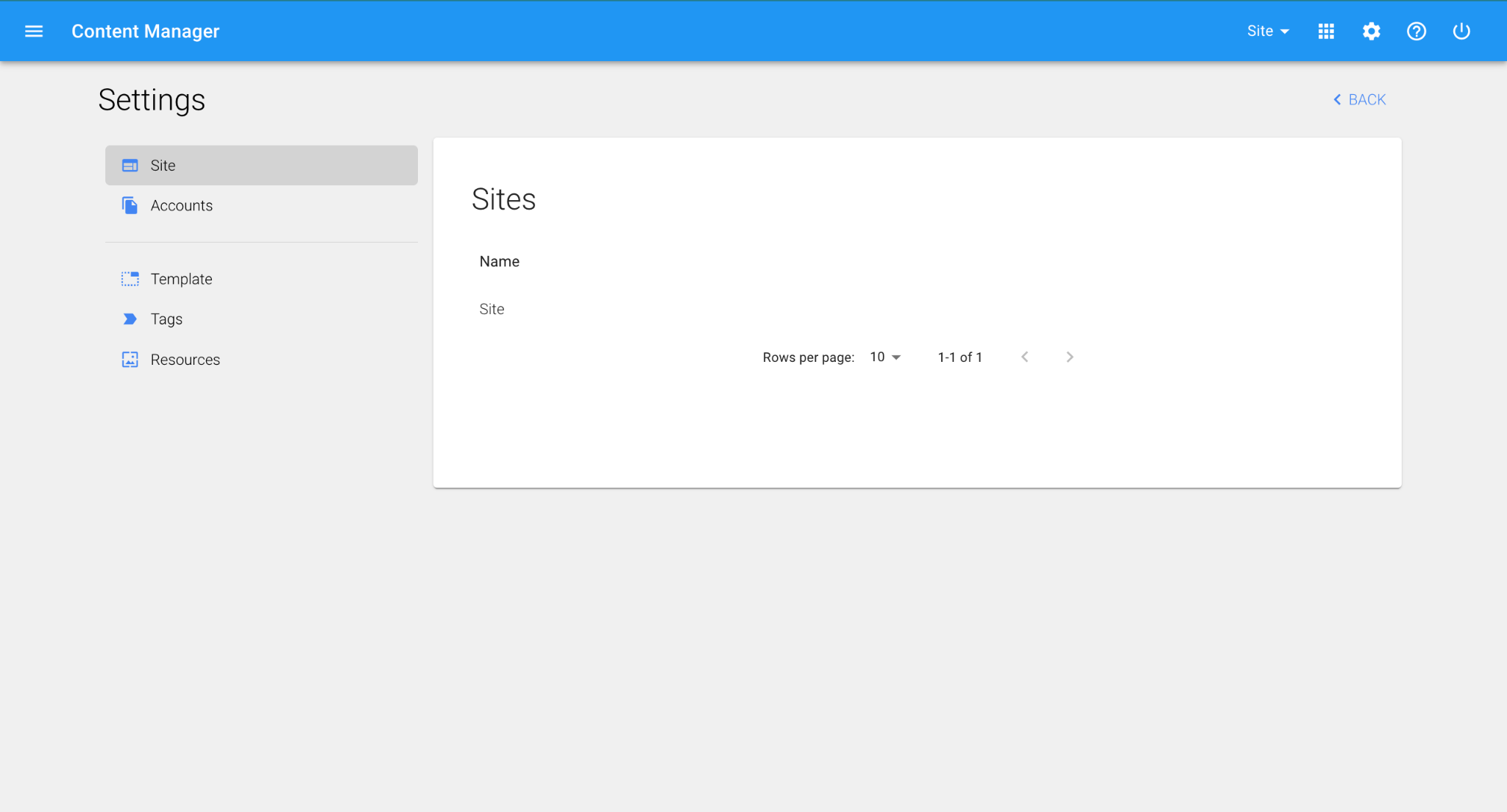 Within the Settings Manager, users with the correct permissions are able to interact with site settings, manage permissions/groups and explore back-end resources/templates.